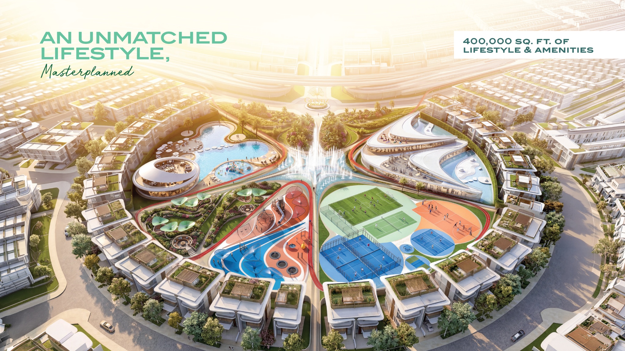 Greenz by Danube הוא פרויקט של בתים פרטיים בפורמט משפחתי רחב, הכולל טאון האוסים ווילות מרוהטים במלואם. מיצוב הפרויקט מבוסס על שילוב בין יחידות גדולות של 3, 4 ו-5 חדרי שינה עם חדר עוזרת, מפרטי ריהוט מלאים ומוצר מגורים שמכוון לקהל המחפש נכס רחב היקף בקטגוריית Off-Plan. תמהיל היחידות, שטחי הבינוי והמחירים מציבים את הפרויקט בפלח הפרימיום של שוק הווילות והטאון האוסים, עם דגש על נכסים מרווחים יותר מהיצע דירות סטנדרטי.